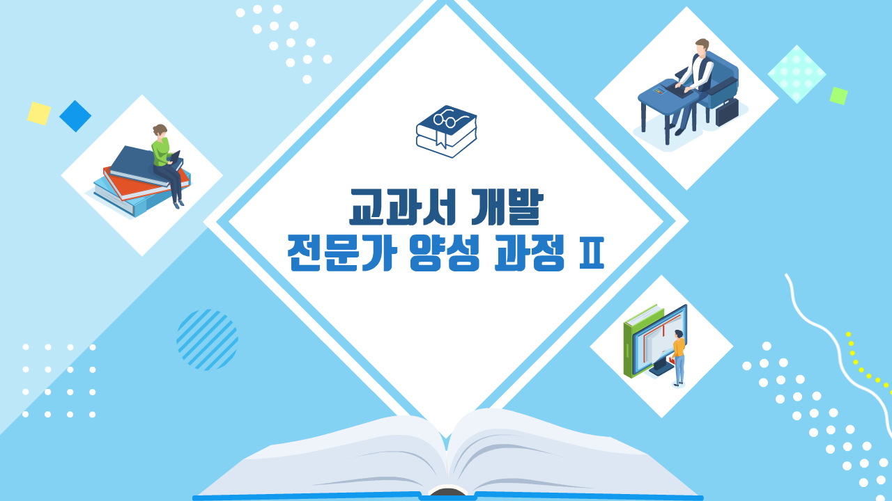 교과서 질 관리 사이버 연수원은 학습자 중심의 다양하고 재미있는 교과서를 만들기 위해 다양한 전문가들이 교과서 제작에 참여할 수 있도록 체계적인 연수 교육과정을 운영합니다.